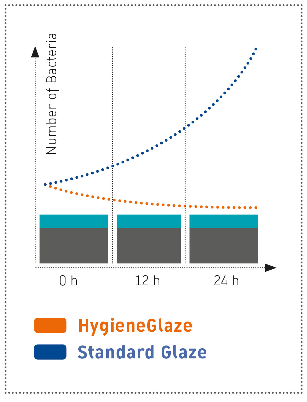 HygieneGlaze jest zintegrowana ze szkliwem ceramicznym, następnie trwale połączona z ceramiką w procesie wypalania.