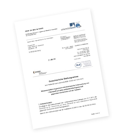 HygieneGlaze nie jest powłoką powierzchniową. HygieneGlaze jest szkliwem ceramicznym, trwale połączonym z ceramiką w procesie wypalania, zapewniając ciągłą ochronę i długotrwałą skuteczność. Testy przeprowadzone przez Instytut Higieny i Zdrowia Publicznego na Uniwersytecie w Bonn potwierdzają, że HygieneGlaze zabija bakterie z niemal bezprecedensową skutecznością 99,9%. Bez bakterii, długotrwale, pewnie: dzięki HygieneGlaze marka Duravit wprowadza nowy standard higieny do łazienki.